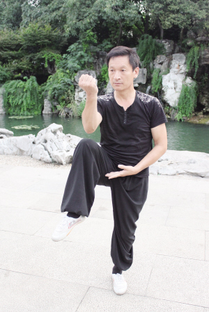 每天清晨,在太平路和縣府街十字路口邊上的小公園里,經(jīng)常可以看到一位身著練功服在此打太極拳的中年男人。只見他一招一式有板有眼,抬腿移步也十分到位。不認識他的人,或許以為他是一位體育老師,其實不然。他只是一個普通的新太倉人,做著五金建材的小生意。
