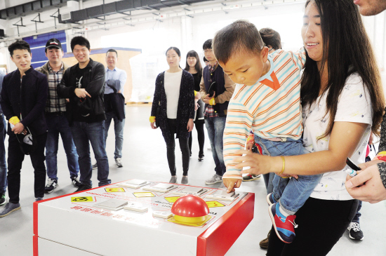 11月7日,德資企業(yè)巨浪凱龍機床(太倉)有限公司舉行首個家庭日活動,主辦方除了組織蹦床、九宮格足球、尋寶總動員等豐富多彩的親子活動外,還邀請員工家人走進車間參觀,體驗生產車間環(huán)保、安全的環(huán)境和設備。圖為員工子女用小手按動自動化大機床。 記者 姚建平 攝