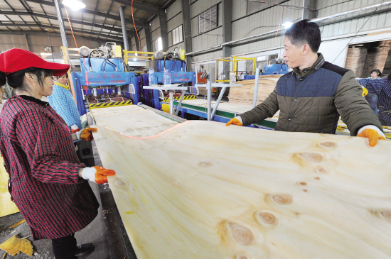 蘇州博豪建材有限公司是一家專業(yè)生產(chǎn)建筑用膠合板的企業(yè),今年投資200余萬(wàn)元引進(jìn)4條先進(jìn)的生產(chǎn)流水線,年產(chǎn)膠合板250萬(wàn)平方米,產(chǎn)品除在華東地區(qū)銷售外,還被中鐵、中建等“國(guó)字頭”企業(yè)選用。圖為昨天生產(chǎn)線在緊張生產(chǎn)膠合板。記者 姚建平 攝