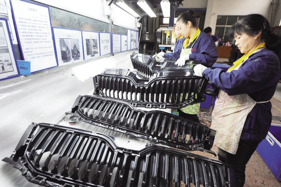 昊晟精密塑模(太倉)有限公司引進(jìn)香港“力勁”電腦全伺服注塑機(jī),生產(chǎn)汽車內(nèi)外飾件、空調(diào)總成等注塑產(chǎn)品,目前已成為通用、大眾、吉利等著名汽車生產(chǎn)商塑料零配件供應(yīng)方之一。圖為昨天員工正在生產(chǎn)為大眾公司配套的汽車進(jìn)風(fēng)格柵。 記者 姚建平 攝