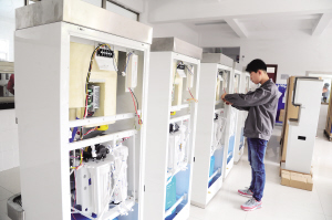 蘇州瀅致節(jié)能電器有限公司生產(chǎn)技術(shù)人員正在組裝銷往山東某高校的即熱型節(jié)能開(kāi)水器。該公司自主設(shè)計(jì)研發(fā)的即熱型節(jié)能開(kāi)水器,自2012年面市以來(lái),暢銷多個(gè)城市的高校、機(jī)關(guān)企事業(yè)單位,每臺(tái)開(kāi)水器比普通開(kāi)水器每月平均節(jié)水5噸,節(jié)能率超過(guò)70%。