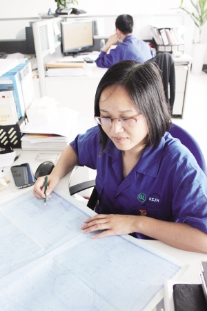 顧新梅在看圖紙。