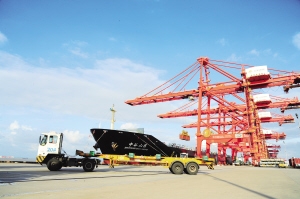 日前,載重4.5萬噸的中谷山東號集裝箱船在太倉港集裝箱碼頭裝載貨物。上半年,上海中谷物流股份有限公司太倉分公司完成吞吐量33.4萬標(biāo)箱,同比增長18%,新增了福建福州、山東日照、廣東汕頭3條內(nèi)貿(mào)航線。 記者 計海新 攝