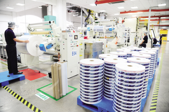 三櫻包裝(江蘇)有限公司現(xiàn)代化生產(chǎn)車間內(nèi),工人正在加工銷往世界各地的新型復(fù)合軟管。該公司生產(chǎn)的牙膏管、食品管、化妝品管、藥品管、立式袋、真空包裝袋等產(chǎn)品出口世界40多個(gè)國家和地區(qū),其中牙膏軟管市場占有率達(dá)40%以上。 記者 計(jì)海新 攝