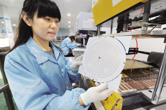昨天上午,何氏電路板有限公司檢測(cè)車間員工正在檢測(cè)出口韓國(guó)的線路板。據(jù)介紹,該公司年產(chǎn)線路板30萬平方米,成為韓國(guó)“三星”、“錦湖”和國(guó)內(nèi)“紅壹佰”、“陽(yáng)光”等知名企業(yè)的供應(yīng)商,今年產(chǎn)值比增可達(dá)30%左右。 記者 姚建平 攝