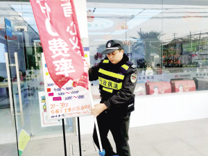 看到有攤販隨地設攤,當場勸阻,并進行合理引導;見到有商戶在門店外擺放物品,和隊員們幫著挪到店內,并督促商家合法經營;看到有戶外廣告損壞的情況,當場進行處理……這些年來,他整日和同事們忙碌在城管執(zhí)法一線,期間雖也遇過不少商戶的“白眼”,挨過個別小販的辱罵,但他始終無怨無悔,堅守在自己的崗位上。