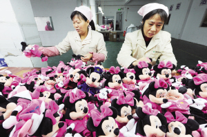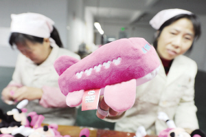 翻過(guò)來(lái)是“米妮”、“米奇”的卡通形象,翻過(guò)去卻是一架紅色的模型狀飛機(jī),這是我市萬(wàn)事暢工藝品有限公司生產(chǎn)的一款最新翻轉(zhuǎn)球玩具。據(jù)介紹,該公司是一家以生產(chǎn)迪士尼玩具為主的廠家,這批2萬(wàn)只“米妮”、“米奇”玩具專為春秋航空公司生產(chǎn)。大圖為昨天該公司員工在加緊生產(chǎn),小圖為翻過(guò)來(lái)的飛機(jī)玩具。