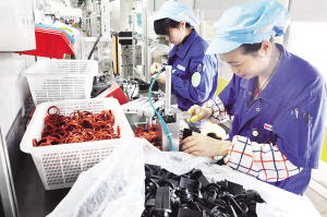 德資企業(yè)裕克施樂塑料制品(太倉)有限公司主要生產(chǎn)非金屬模具和各種塑料制品,年產(chǎn)非金屬模具500件,塑料制品200萬件。該公司雖然只有600名員工,但去年實現(xiàn)產(chǎn)值8億元。圖為公司員工在生產(chǎn)線上加工塑料制品。記者 姚建平 攝