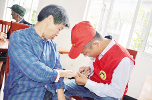隨著活動的增多,影響也越來越大。如今,這個歸莊阿姨志愿服務(wù)團(tuán)里不僅有女性,還有很多男同志在借這個平臺奉獻(xiàn)愛心。參加歸莊阿姨志愿服務(wù)團(tuán)最早的是在一家櫥柜經(jīng)營店工作的何存林。當(dāng)天,他早早來到沙溪怡悅園,為老人按摩、剪指甲。在志愿服務(wù)的間隙,何存林說,跟大姐姐們一起參加志愿服務(wù),就是要學(xué)習(xí)他們的志愿精神以及服務(wù)的方式方法,將來有可能的話也像她們一樣,成立一個草根志愿服務(wù)團(tuán)隊,聚集更多的愛心人士一起獻(xiàn)愛心。