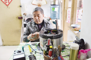 令周應(yīng)鋒高興的是,自己磨剪刀、菜刀的“小手藝”特別受居民歡迎,作為“業(yè)余愛好”修理小家電的活計也得到了大家的肯定。“前段時間,社區(qū)里有個居民找到我,說是孫女最喜歡的一輛電動小車壞了,讓我?guī)兔纯?。我查了查,發(fā)現(xiàn)是遙控器的芯子出了問題,用十幾塊錢換了個芯,車子馬上就能動了。”那之后,小姑娘每次看到他,就追著叫“修好車車的阿公”,讓他感覺特別滿足。
